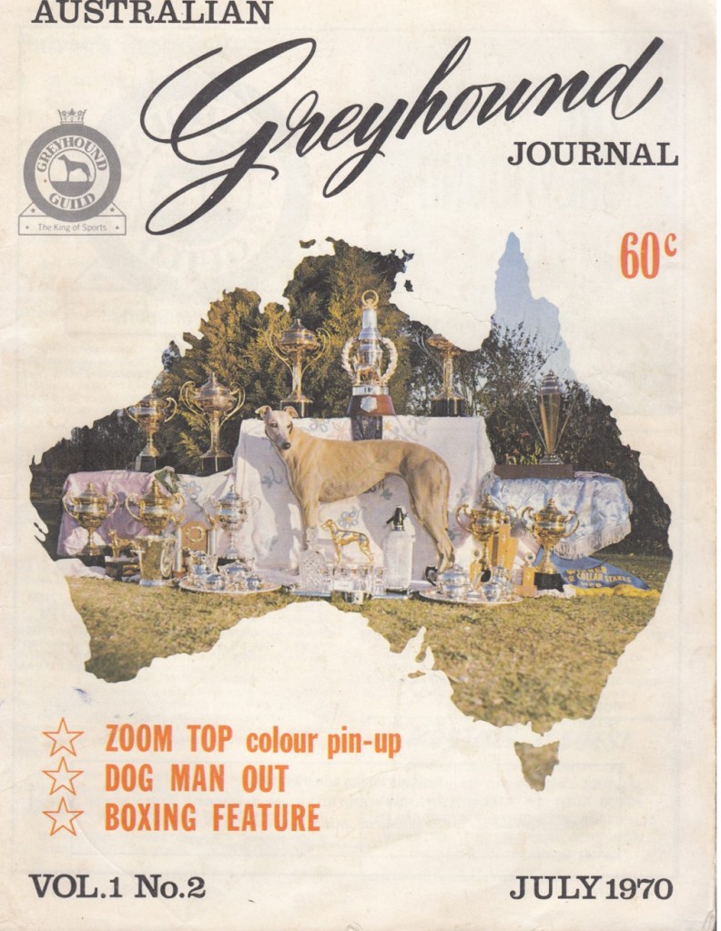 1969 wasn’t much different any track any time she would travel and defend her titles , breaking track records at Newcastle and in her 100th start she cracked the record at Maitland then at Beenleigh defending her title she broke her own record and made it 11 distance victories in a row ,in 1970 she broke her record at Temora over 457 then won a top grade sprint at Olympic park then a length outside record at Orange over 494 metres then the Singleton cup over 640 metres ,after 68 wins the machine that was Zoom Top was retired after pulling a muscle in her back leg , I can’t believe what I’ve just written she was immortal.